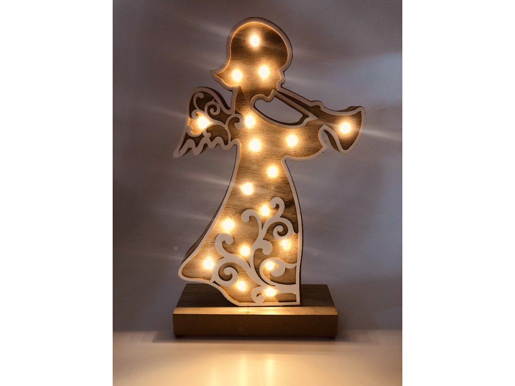 Dřevěná svítící dekorace - Anděl (33 cm)