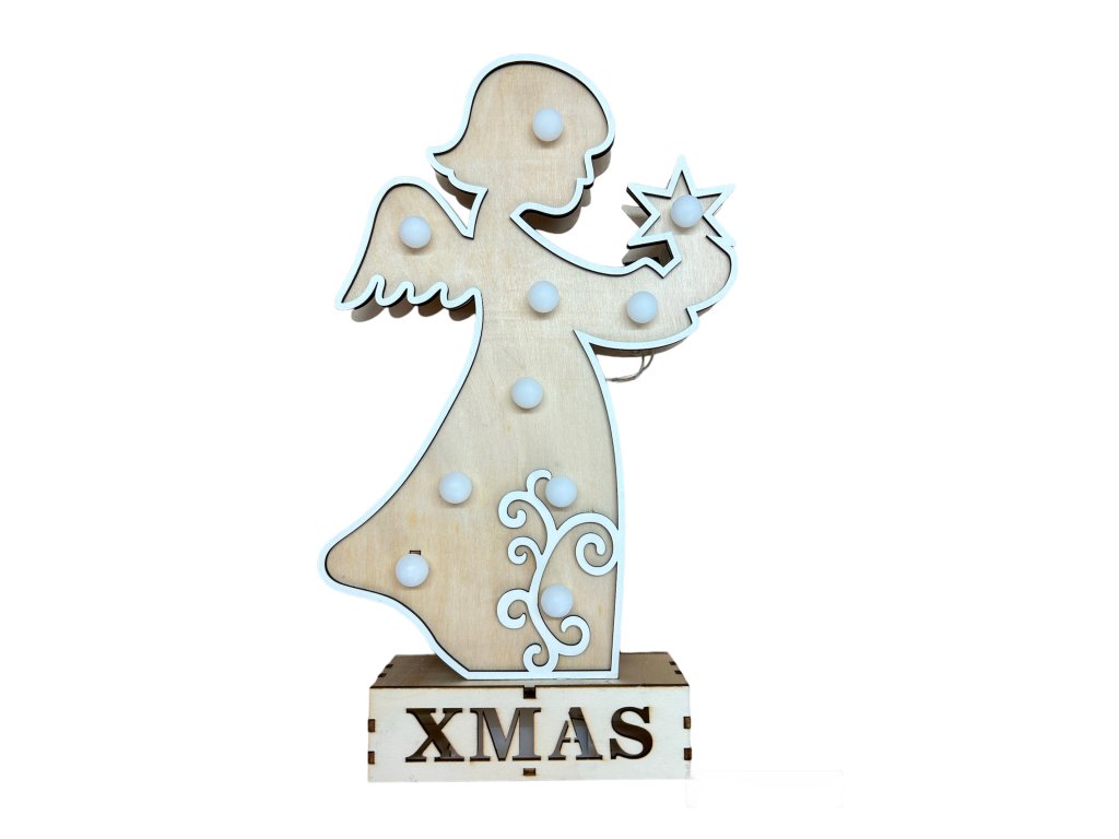 Dřevěná svítící dekorace - Anděl XMAS (33 cm)