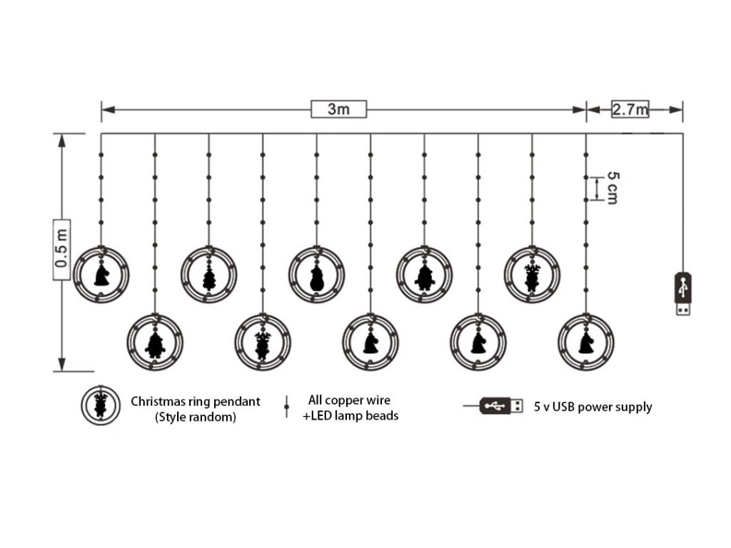 Světelný vánoční LED závěs - Postavičky 3 m (115 LED)