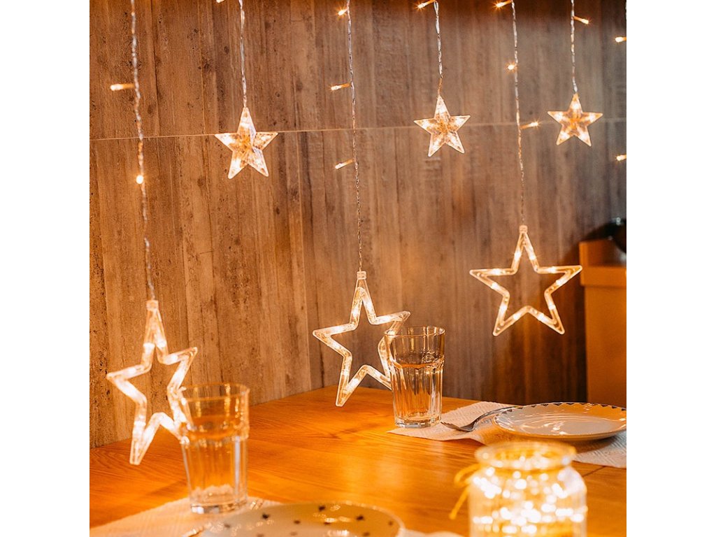 Vytvořte si doma nezapomenutelnou vánoční atmosféru s touto nádhernou světelnou dekorací. LED řetěz s hvězdami je perfektním doplňkem, který rozzáří váš interiér i exteriér díky elegantnímu designu a různým režimům svícení a blikání. Zachumlejte svůj domov do kouzelné vánoční nálady plné teplého světla a radosti.