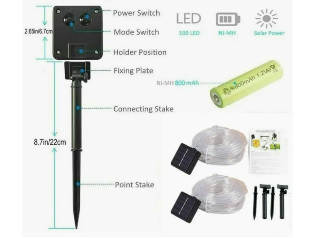 Vánoční LED světelná hadice solární - 12 m (100 diod) Teplá bílá