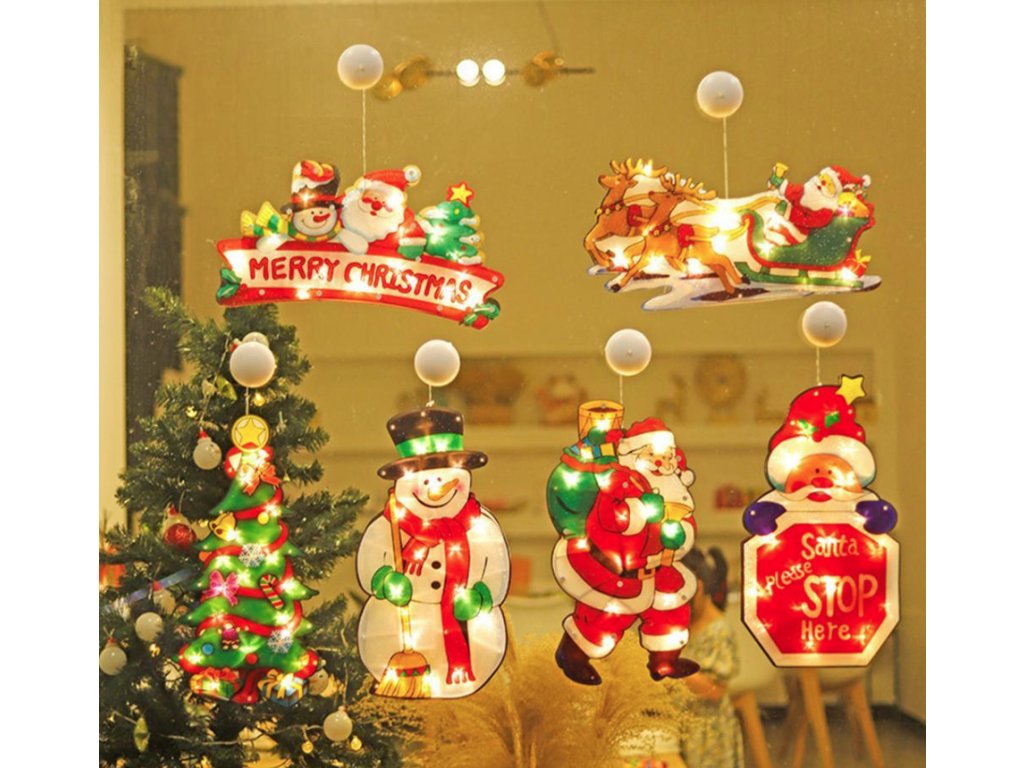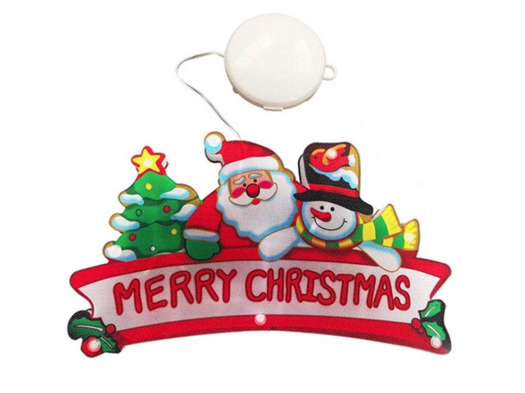 Vánoční LED závěsná dekorace do okna - Merry Christmas (Santa a sněhulák)