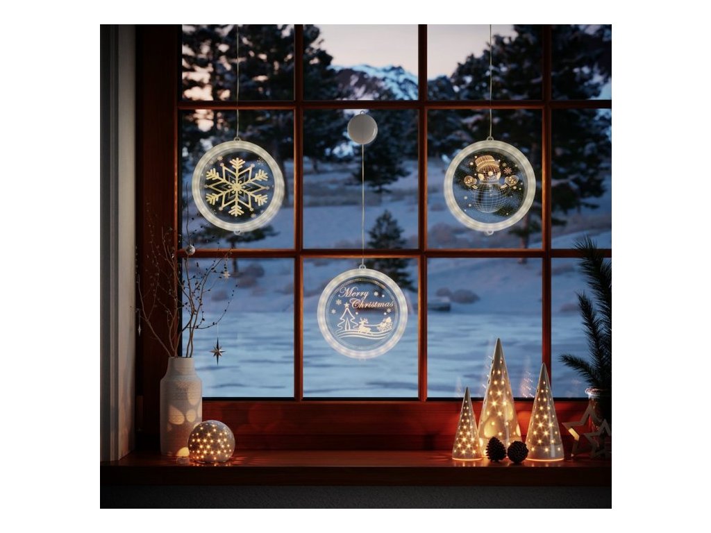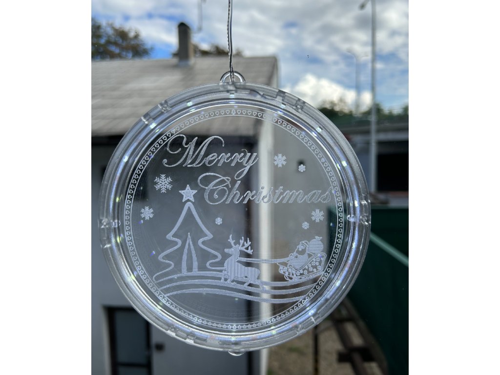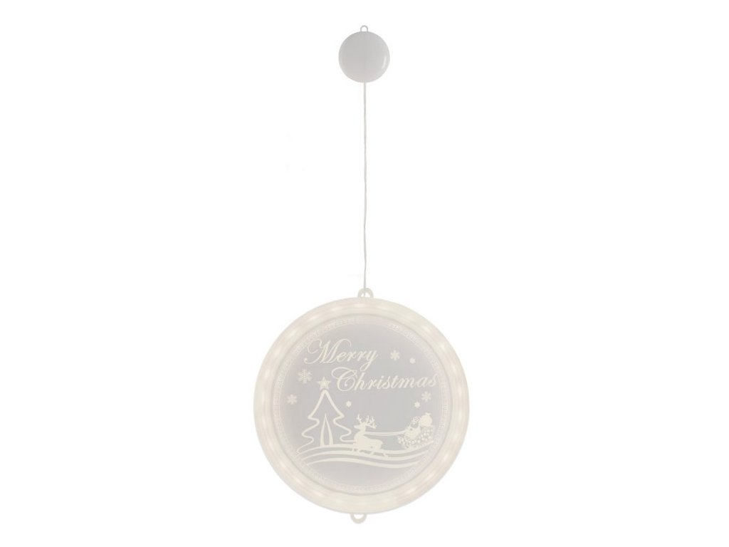 Vánoční LED závěsná dekorace kulatá - Merry Christmas (Santa a sob) Teplá bílá
