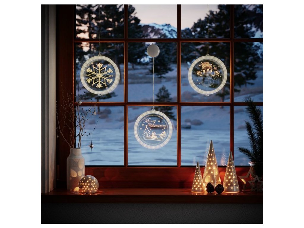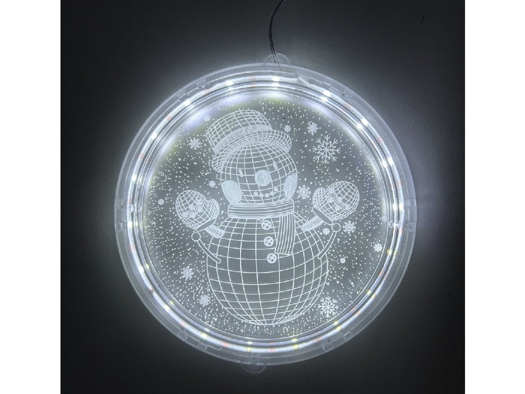 Vánoční LED závěsná dekorace kulatá - Sněhulák Teplá bílá
