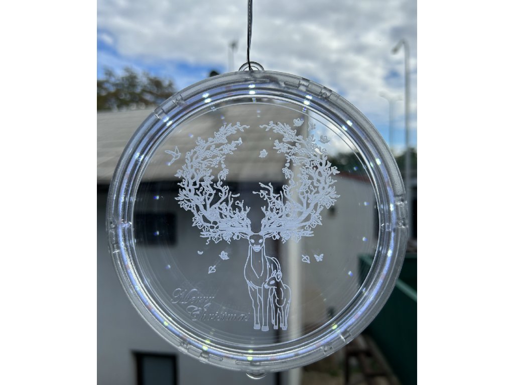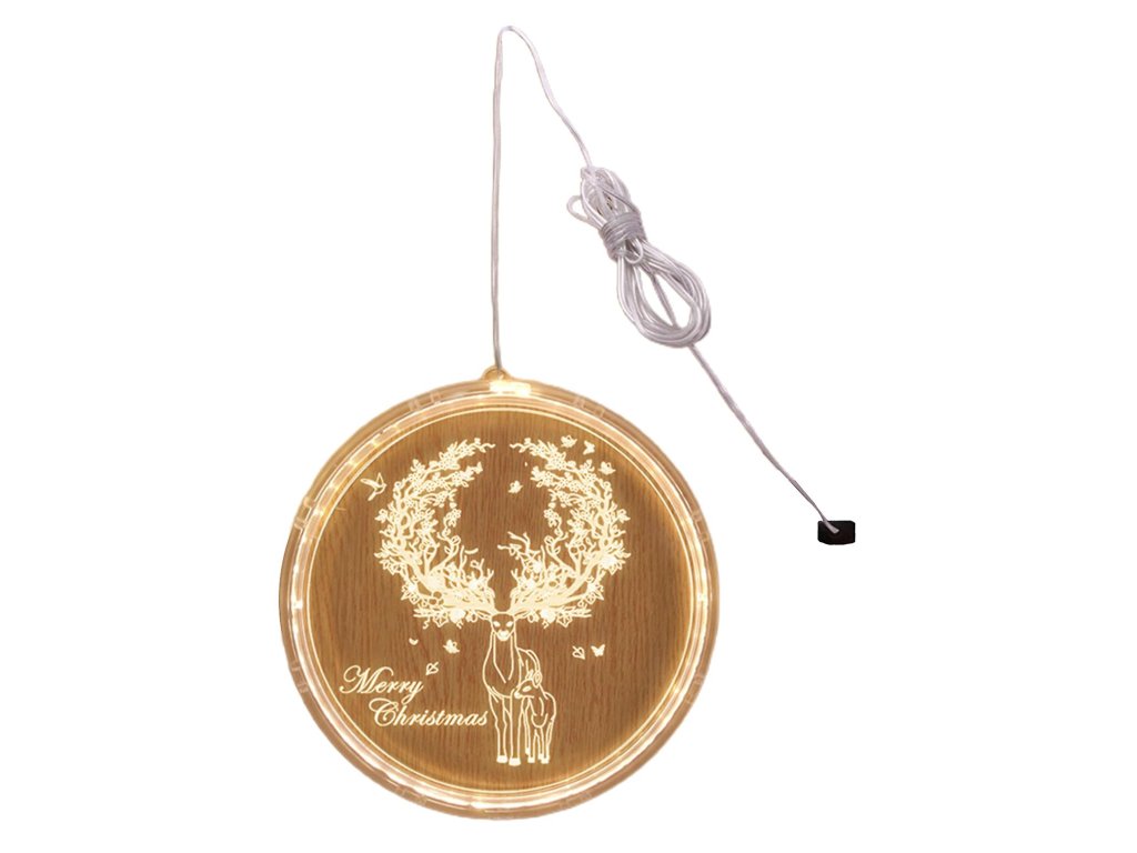 Vánoční LED závěsná dekorace kulatá - Sobi Studená bílá