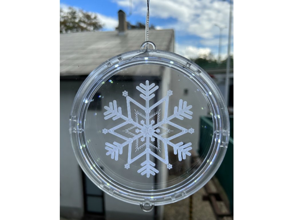Vánoční LED závěsná dekorace kulatá - Vločka Studená bílá