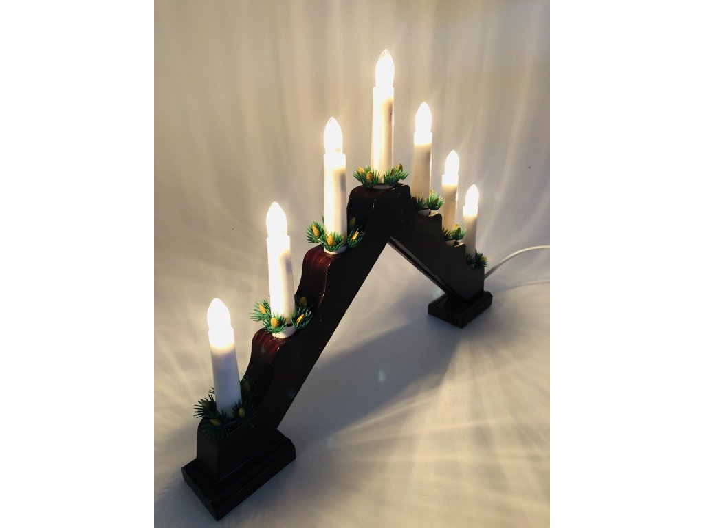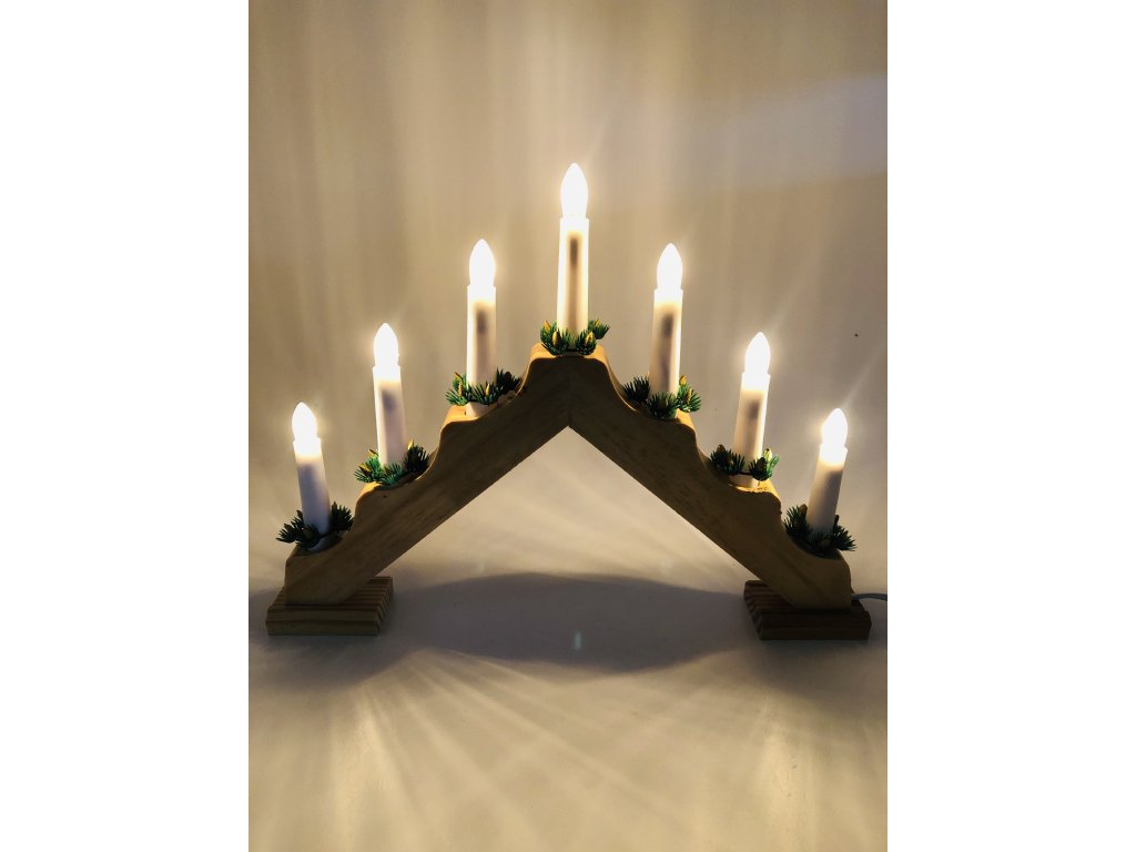 Vánoční svícen pyramida - 7 žárovek (do zásuvky) Přírodní