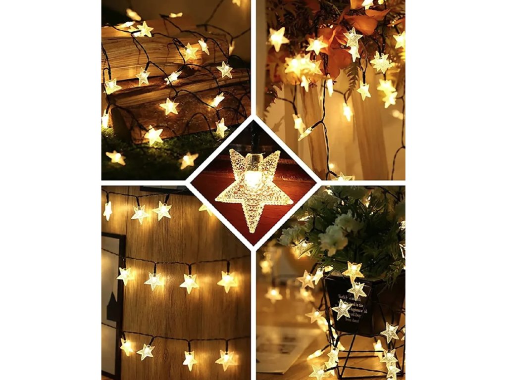 Venkovní vánoční solární led osvětlení - Hvězdy 30 LED (5m) Studená bílá