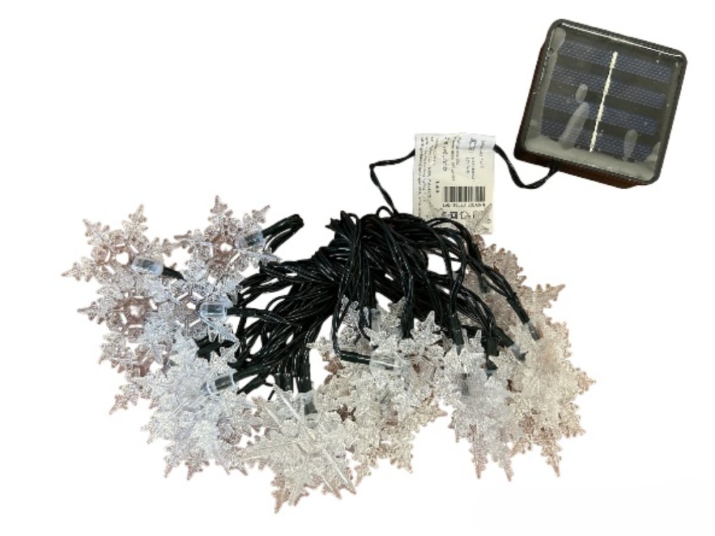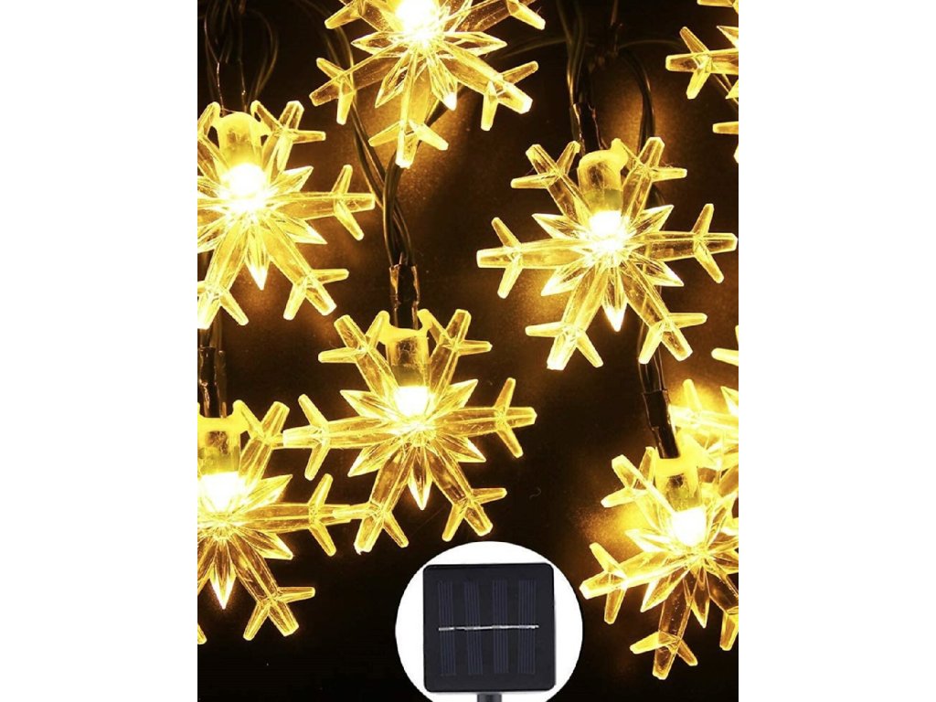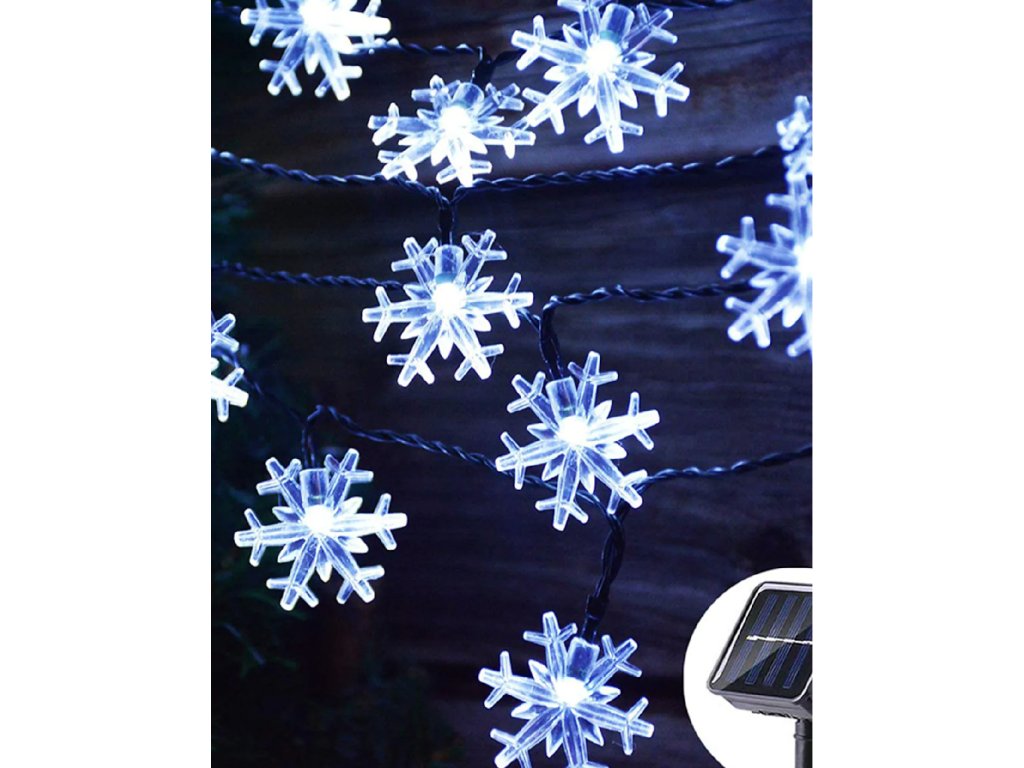 Venkovní vánoční solární led osvětlení - Vločky 30 LED (5m) Studená bílá