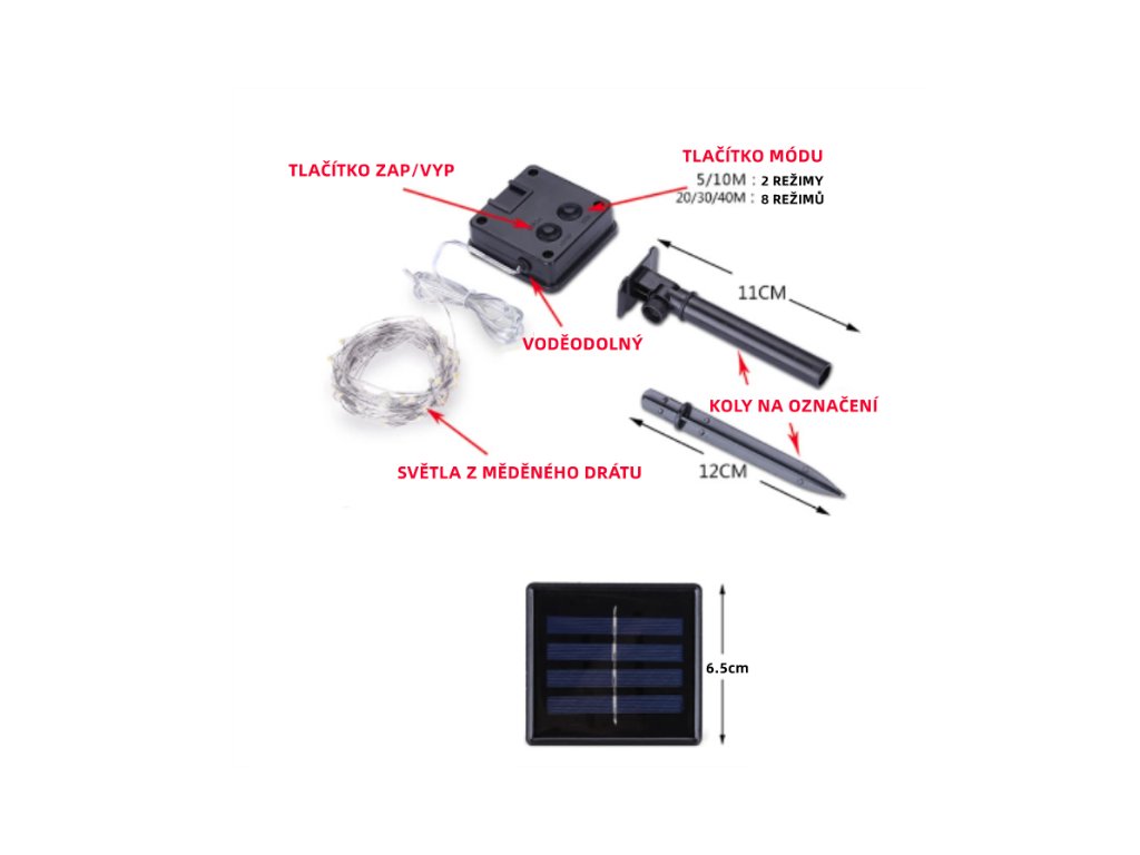 Venkovní vánoční osvětlení se solárním panelem - 10m (100 LED) Teplá bílá