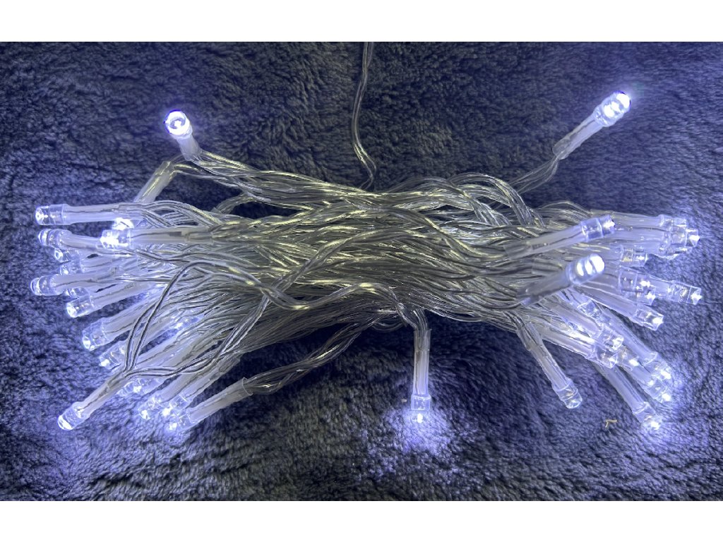 Vnitřní vánoční led osvětlení na baterie - Studená bílá (čirý kabel) Studená bílá 5m - 50 led diod
