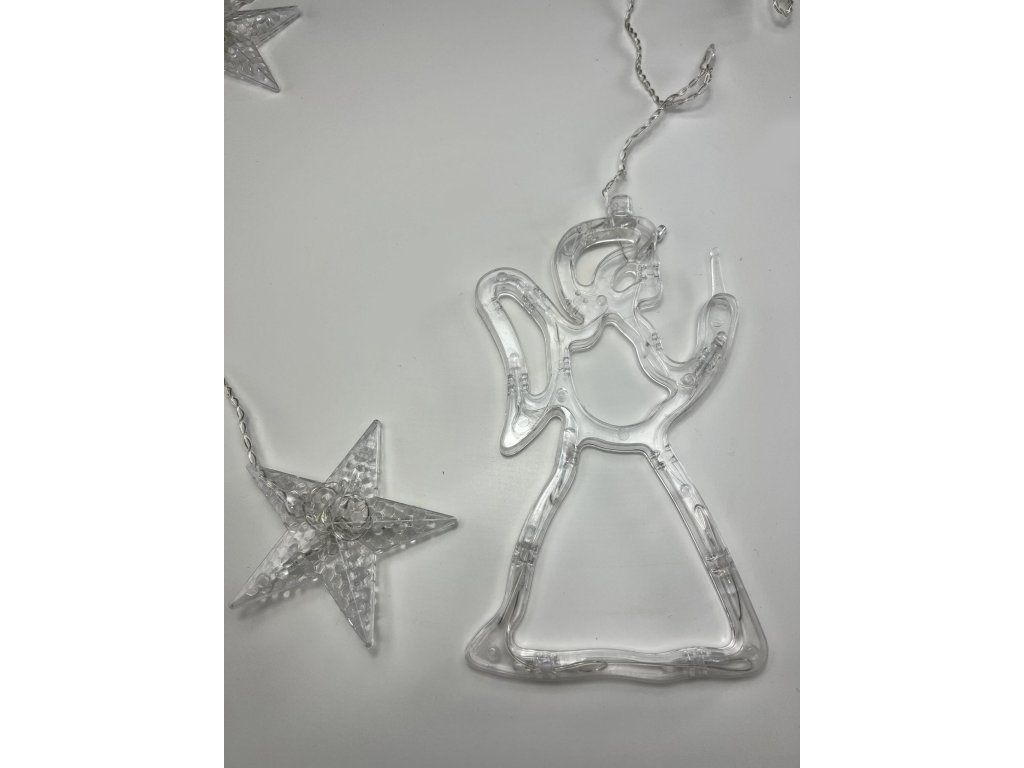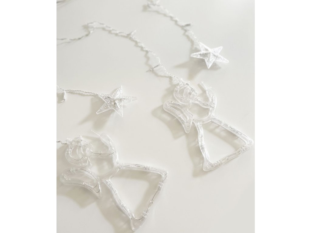 Vnitřní vánoční LED závěs - Hvězdy s andělem 2,5 m (138 LED) Teplá bílá