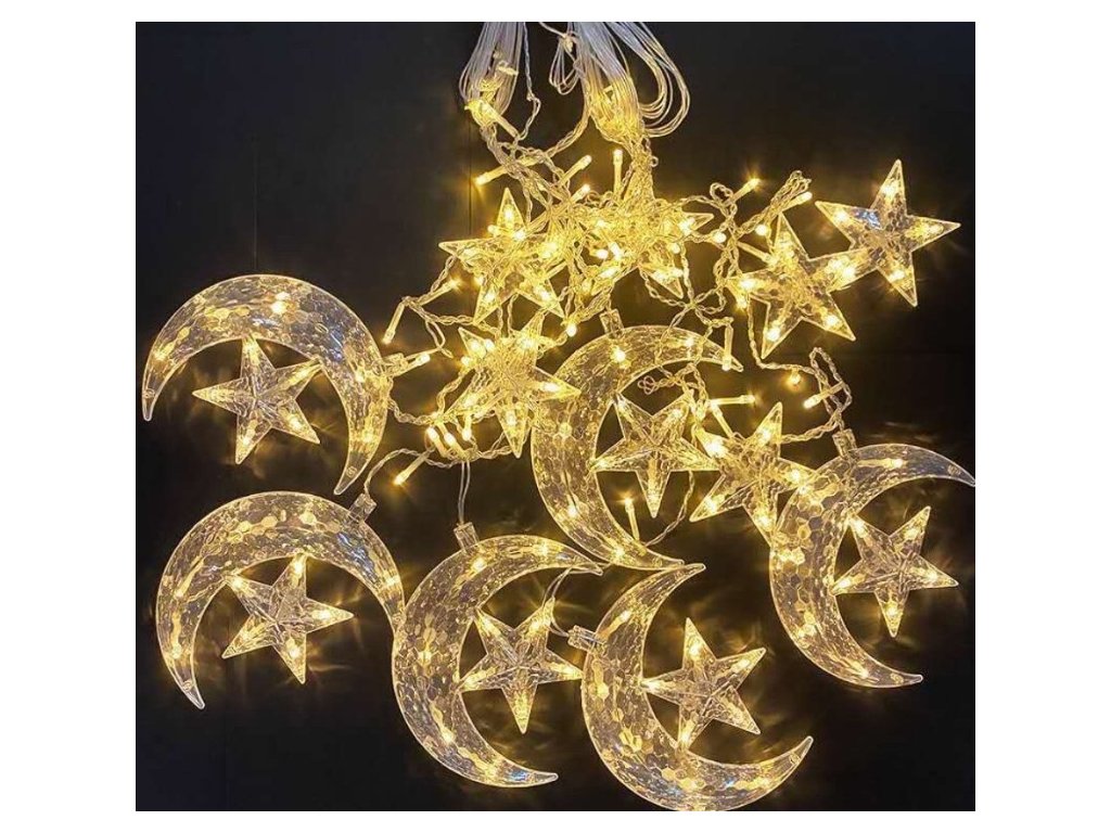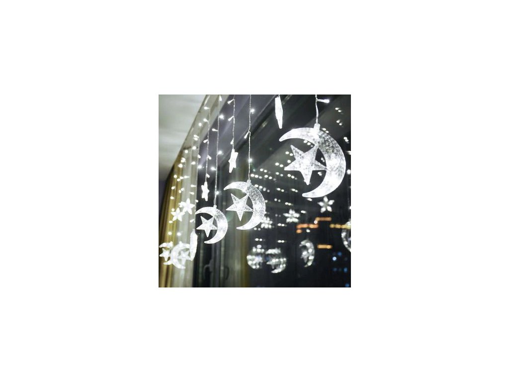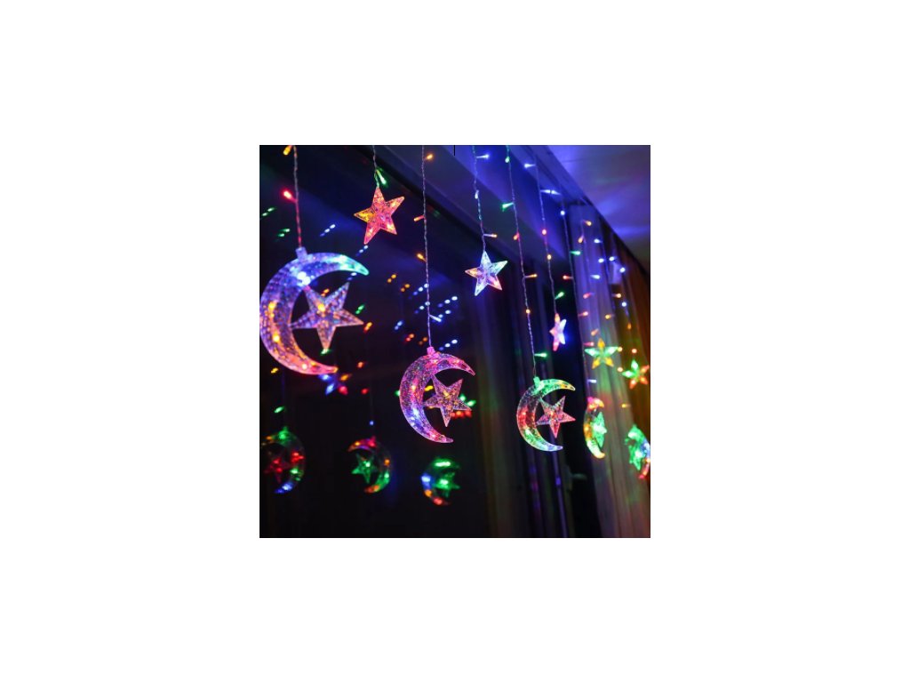 Vnitřní vánoční LED závěs - Hvězdy s měsícem 2,5 m (138 LED) Barevná