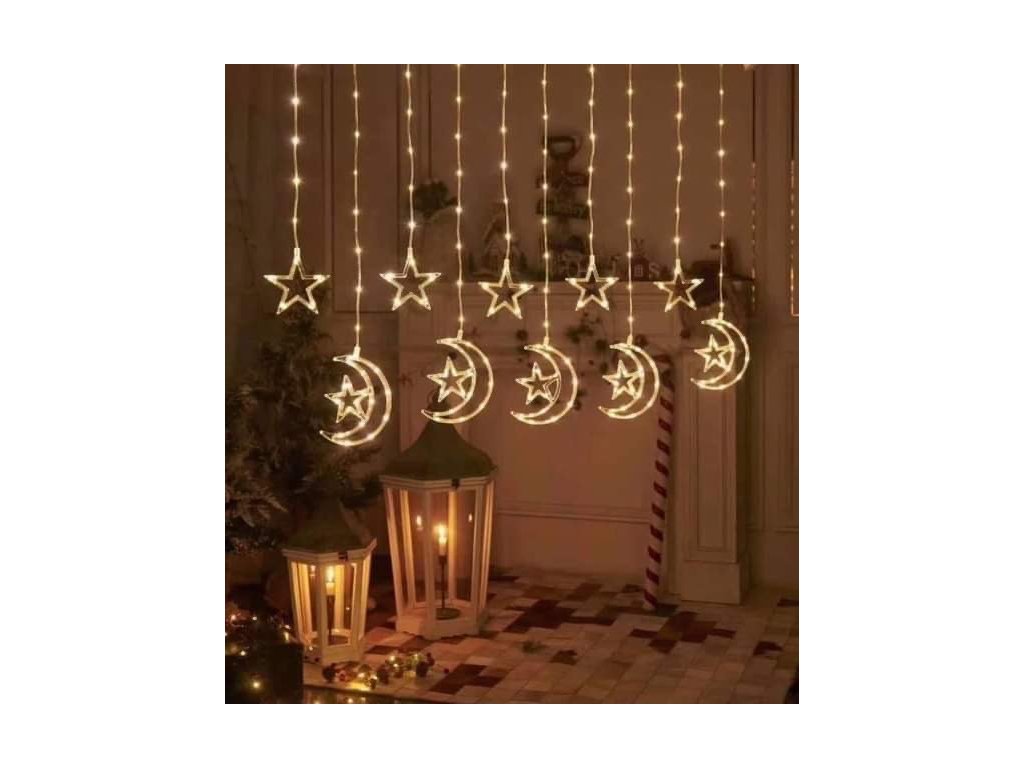 Vnitřní vánoční LED závěs - Měsíc s hvězdami 2,5 m (138 LED) Teplá bílá